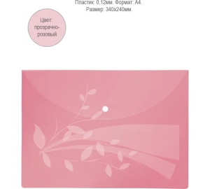 Папка конверт на кнопке A4 0,12 мм Розовая
