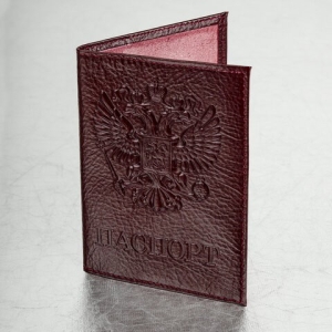 Обложка для паспорта натуральная кожа Virginia Герб темно-бордовая