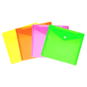 Папка-конверт на кнопке А5+ 150мкм пластик прозрачная неон ассорти