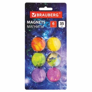 Круглые стеклянные магниты BRAUBERG со стильным 3D-дизайном "Планеты" надежно прикрепят листы бумаги к магнитно-маркерной поверхности досок, флипчартов и холодильников.