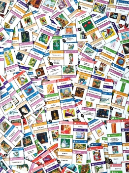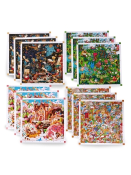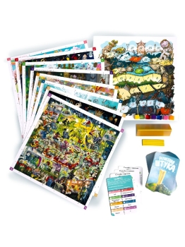 Всего в коробке 8 полей, созданных современными художниками. Вся поля отличаются по настроению и уровню сложности, так что каждый найдет что-то для себя.