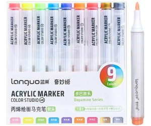 Маркеры акриловые 9 цв 1-3 мм кисть неоновые + золото серебро