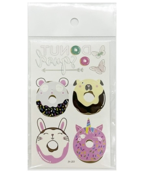 Наклейки Тату Милые пончики 6шт на листе 12х7,5 см светящиеся в темноте