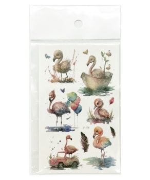 Наклейки Тату Фламинго 6шт на листе 12х7,5 см глиттер