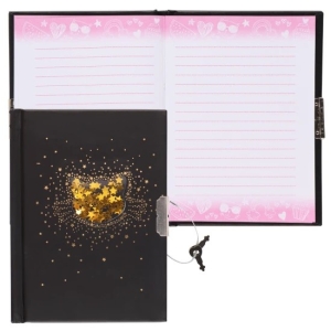 Книжка записная А6 56л линия на замке Золотая кошка