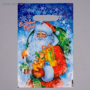 Пакет полиэтиленовый с вырубной ручкой 20х30 см Новогодняя метель