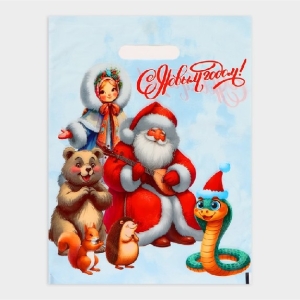 Пакет полиэтиленовый с вырубной ручкой 30 х 40 см Дед мороз со зверушками