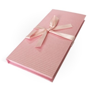 Коробка подарочная для денег с бантом полоска розовый перламутр