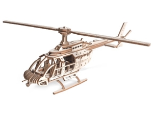 У собранной модели вращаются хвостовой винт и несущий винт на резиномоторе. При желании игрушку можно раскрасить акриловыми красками.