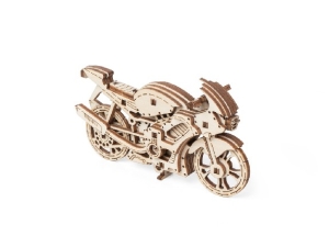 У собранной модели вращаются колеса и выдвигается ножка. При желании игрушку можно раскрасить акриловыми красками.