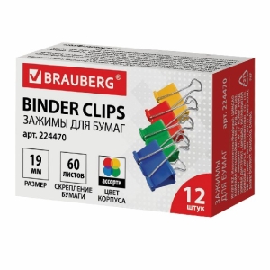 Зажимы для бумаг 19 мм 12шт цветные