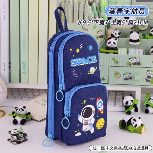 Пенал 2 отделения с карманом вертикальный Space синий