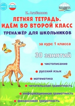 Книга «Летняя тетрадь. Идём во второй класс. Тренажёр для школьников» включает в себя 30 занятий для учащихся, которые пойдут во второй класс. Задания этих занятий помогут ребёнку перед началом учебного года повторить весь материал, который изучался в первом классе: русский язык, математику, потренироваться в чистописании, вспомнить, что такое читательская, информационная и финансовая грамотность.