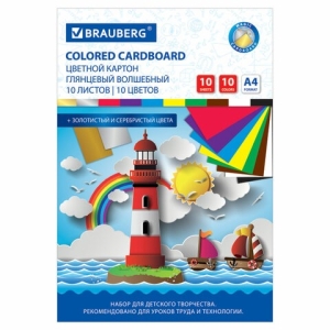 Картон А4 10л 10 цв мелован Волшебный Маяк
