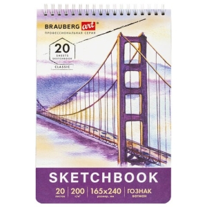Скетчбук 165х240 мм 20л ватман ГОЗНАК 200 г/м2, гребень