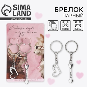 Брелок для ключей парный неразлучники Любить тебя я буду вечно 9х13 см