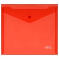 Папка-конверт на кнопке А5 180мкм пластик прозрачная красная