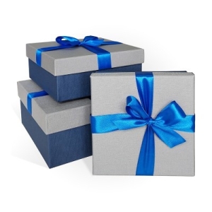 Коробка подарочная 170х170х70 с бантом светло-серый лента синяя