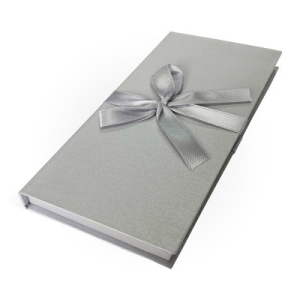 Коробка подарочная для денег с бантом 172х83х16 Серебристый серая лента