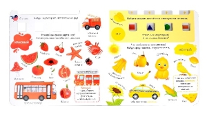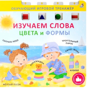 Обучающий игровой тренажёр «ИЗУЧАЕМ СЛОВА, ЦВЕТА И ФОРМЫ» — это пособие, которое познакомит вашего ребёнка с новыми словами, с основными цветами, формами и интересными фактами. На каждом развороте вас ждут красочные картинки и много заданий: найди картинку нужного цвета или формы, подбери картинки по сочетанию цветов или фрагменту и т. п. Выполняя задания, передвигайте полоски тренажёра так, чтобы в окошках появились правильные ответы. Обучающий игровой тренажёр — это уникальная технология, разработанная детскими психологами.