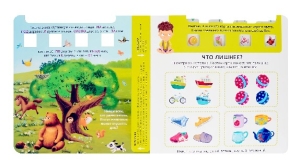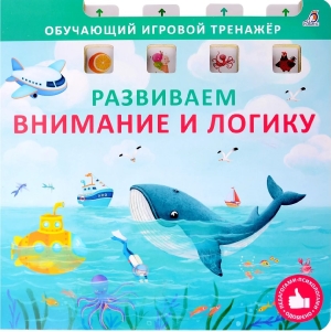 Обучающий игровой тренажёр «Развиваем внимание и логику» - это пособие, которое поможет развить наглядно-образное и словесно-логическое мышление, внимание, зрительное восприятие, речь и воображение, а также умение классифицировать, сравнивать, обобщать, устанавливать причинно-следственные и логические связи. На каждом развороте вас ждут красочные картинки и интересные задания: найди нелепицы, лишние картинки, обобщать одним словом, использовать правильные предлоги, описать положение в пространстве и свойства предметов и т. п. Выполняя задания, передвигайте полоски тренажёра так, чтобы в окошках появились правильные ответы. Обучающий игровой тренажёр – это уникальная технология, разработанная детскими психологами.