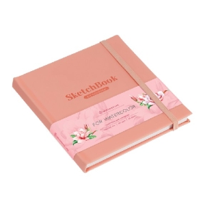 Скетчбук для акварели 40л 145*145 коралловый кожзам на резинке 200 г/м2