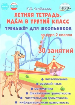 Летняя тетрадь Идём в 3 класс Тренажёр для школьников. Летние задания за курс 2 класса включает в себя 30 занятий для учащихся, которые пойдут в третий класс. Задания этих занятий помогут ребёнку перед началом учебного года повторить весь материал, который изучался во втором классе: русский язык, математику, потренироваться в чистописании, вспомнить, что такое читательская, информационная и финансовая грамотность. Развивающие задания даны в интересной, занимательной форме, не повторяют упражнений из учебников, но в то же время полностью соответствуют программным требованиям, что позволяет использовать данный тренажёр при обучении по любому УМК. Летние задания за курс 2 класса идем в 3 класс предназначена для самостоятельной работы учащихся, перешедших в третий класс, и будет полезна школьникам, родителям, учителям начальных классов.