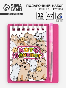 Набор блокнот 9 х 10,4 см и мини-ручка Котики