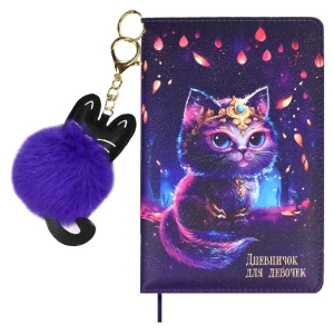 Дневничок для девочек А6 96л Волшебный кот кожзам