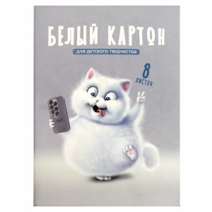 Картон А4 8л белый мелован 230 г/м Веселый кот