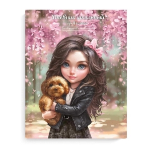 Дневник школьный 1-4 кл 48л Брюнетка с собачкой