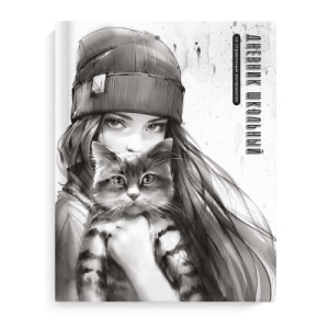 Дневник школьный 1-11 кл 48л Девушка с котом осень