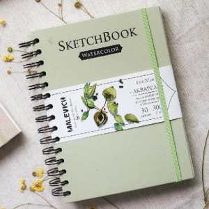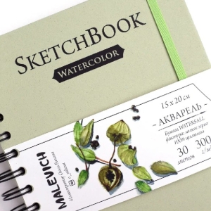 Скетчбук для акварели 15х20 см 30л Nature 100% целлюлоза WaterFall спираль салатовый 300 г/м