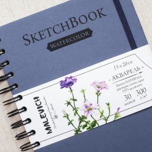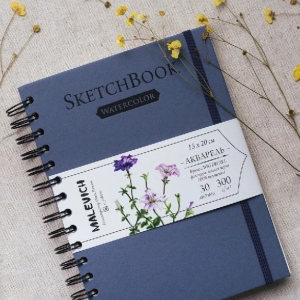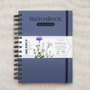 Скетчбук для акварели 15х20 см 30л Nature 100% целлюлоза WaterFall спираль синий 300 г/м