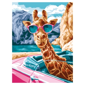 Картина по номерам на картоне 30*40 Жираф в кабриолете