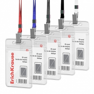Бейдж вертикальный с лентой размер вставки 62х91 мм прозрачный цвет ленты ассорти