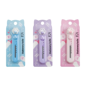 Нож канцелярский 9 мм Paw блистер ассорти