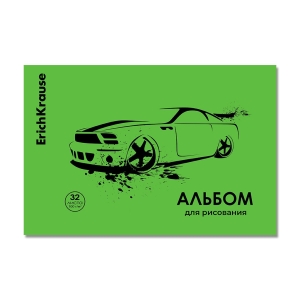 Альбом для рисования 32л на скобе c пластиковой обл Car Neon зеленый