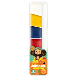 Краски акварель 06 цв Чебурашка медовая без кисти пластик