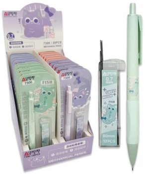 Карандаш авт 0,7 мм Кот круглый корпус с грипом с грифелями в футляре