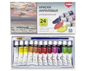 Краски акриловые 24 цв 6мл в пластик тубе с кистью