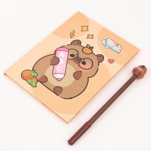 Блокнот-бизнес 13*18 см 50л клетка+ ручка Капибара