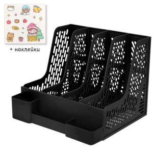 Предназначен для систематизации и хранения документов. 4 вертикальных отделения и 3 горизонтальных отсека. Размер: 32,3*30,5*26 см. В комплекте есть наклейки