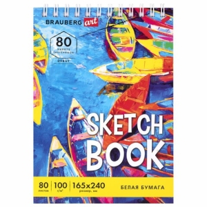 Изделие имеет размер 165х240 мм и содержит 80 белоснежных листов плотностью 100 г/м2 с гладкой текстурой. Листы удобно скреплены спиралью, что позволяет переворачивать их на 180 градусов. Привлекательная твердая обложка и жесткая задняя подложка позволяет делать зарисовки и наброски "на весу". Бумага не съедает цвет, оставляя яркие цвета неизменными.