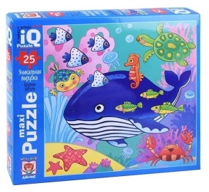 Q Пазл детский Айрис - пресс макси 25 элементов, Кит в синем море 2+ (978 - 5 - 8112 - 8224 - 1). Пазлы для малышей помогают развивать логическое мышление, мелкую моторику, координацию движений, а также учат ребенка внимательности и терпению. Благодаря ярким и красочным изображениям, малыши с удовольствием собирают такие пазлы, получая при этом массу положительных эмоций. Такая развивающая игрушка может стать не только развлекательным, но и полезным подарком для малыша на Новый год или день рождения