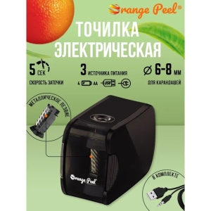 Точилка электрическая 1 отв с контейнером ORANGE PEEL X2 черная