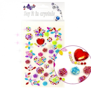 Наклейки-стразы акриловые Нежные цветы, цветы, крупное красное сердце