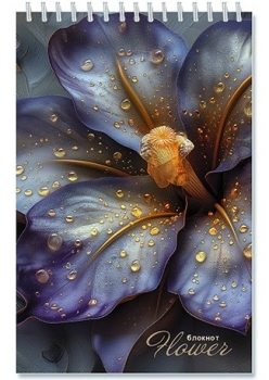 Блокнот А5 48л клетка на гребне блестки Золотой цветок