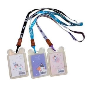 Бейдж вертикальный 80*120 мм на цветной ленте с держателем Котики