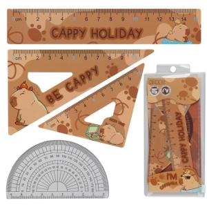 Набор чертежный 4пр малый гибкий линейка 15 см 2 треуг трансп Капибара